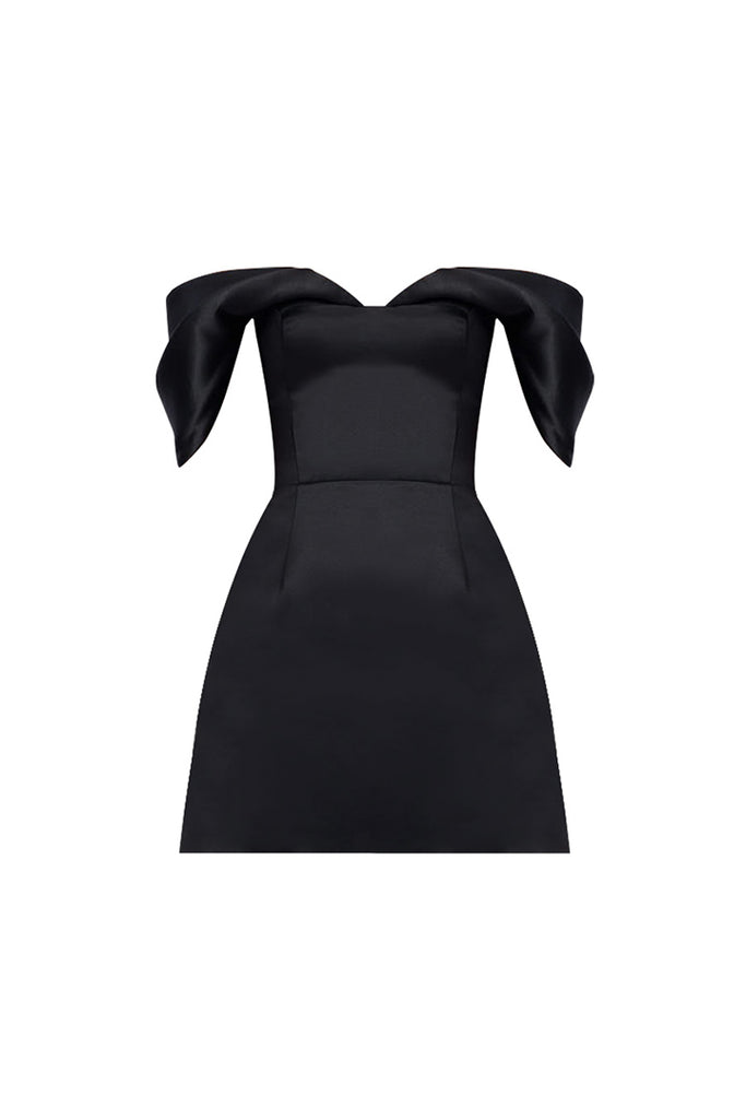 Emily Dress - Siyah Saten Kalp Yaka Mini Elbise